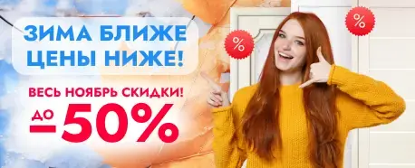 Весь ноябрь "ГИГАНТ-ДВЕРИ" дарит покупателям скидки до -50%. Воспользуйтесь удачным моментом, чтобы выгодно купить и установить двери.