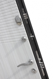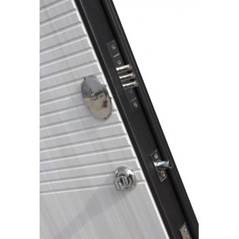 Дверь имеет хорошую прочность из-за толщины металла 1,2 мм. Оснащена двумя надежными замками, минимум один из которых имеет высший класс взломостойкости по ГОСТ 5089-2003 (4 класс). Есть ночная задвижка — дополнительная защита от взлома. Никто не сможет зайти, вскрыв замок, когда вы дома.