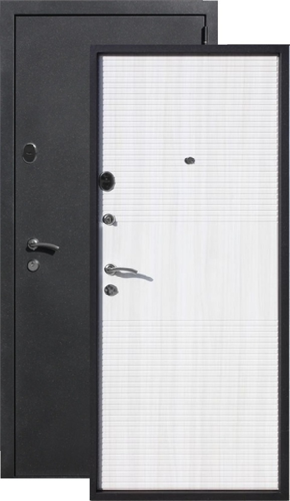 Качественная российская дверь со стильной внешней отделкой муар черный и красивой декоративной панелью толщиной 8 в цвете ясень белый. Прекрасно подойдет для установки в квартиру. Надежная модель, которая прослужит долгие годы.