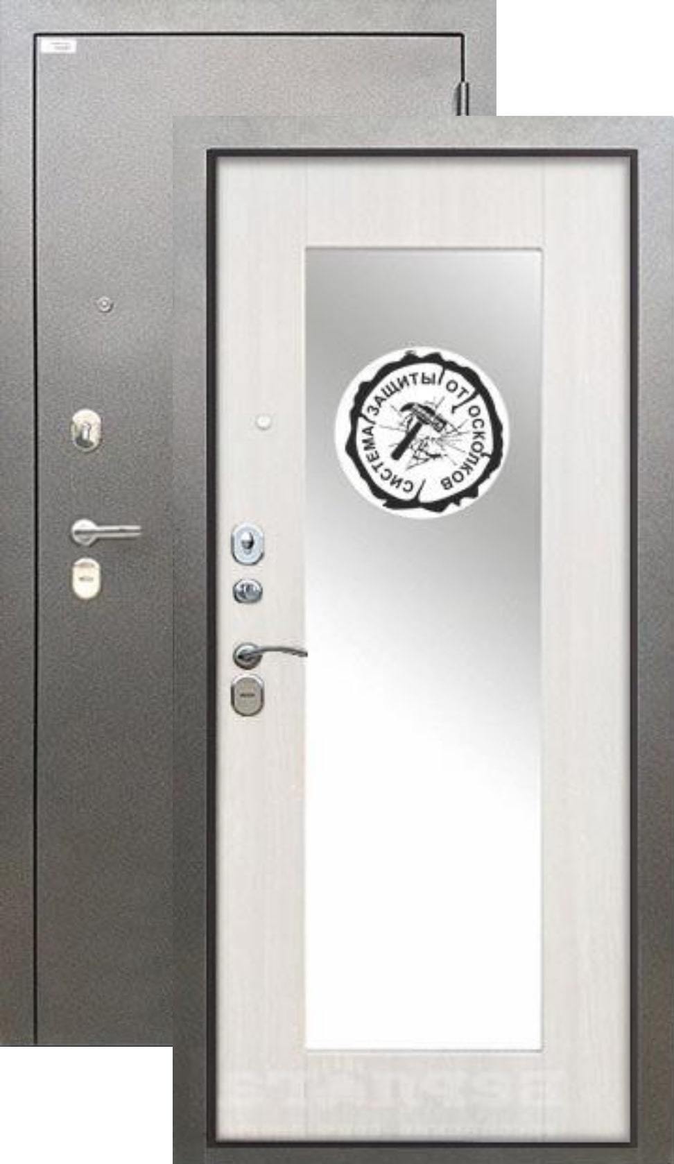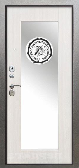 Повышенной надежности российская дверь с большим зеркалом на внутренней панели. Прекрасно подойдет для установки в квартиру. Солидная модель, которая хорошо защитит и подчеркнет статус.