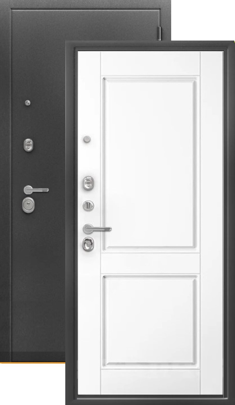 Повышенной надежности российская дверь c красивой декоративной панелью толщиной 12мм в цвете эмалит арктик. Прекрасно подойдет для установки в квартиру. Солидная модель, которая хорошо защитит и подчеркнет статус.