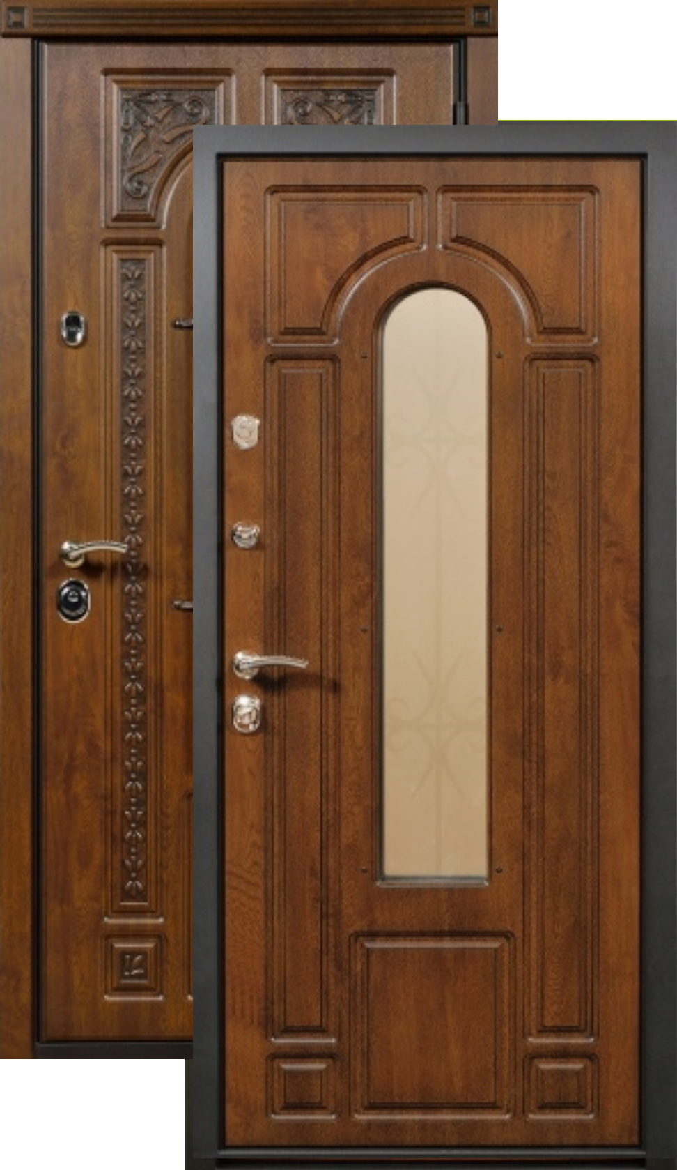 Наиболее толстые и практичные двери, что обеспечивает максимальный уровень тепло- и шумоизоляции.
